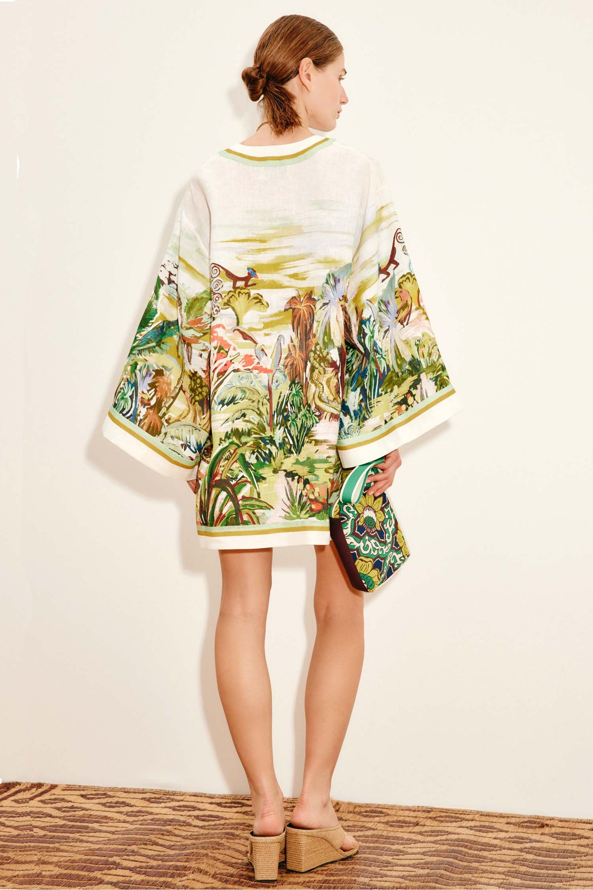 Channel sun-drenched elegance in the Alémais Jungle Boogie Mini Dress. Made from airy European Linen, this relaxed straight tunic dress is elevated by its tropical jungle-inspired print. The intricate illustrations dance across the dress, balanced by its deep V-neck and dropped sleeves with wide cuffs. Wear yours with artisanal slides and a raffia clutch for sunlit getaways.