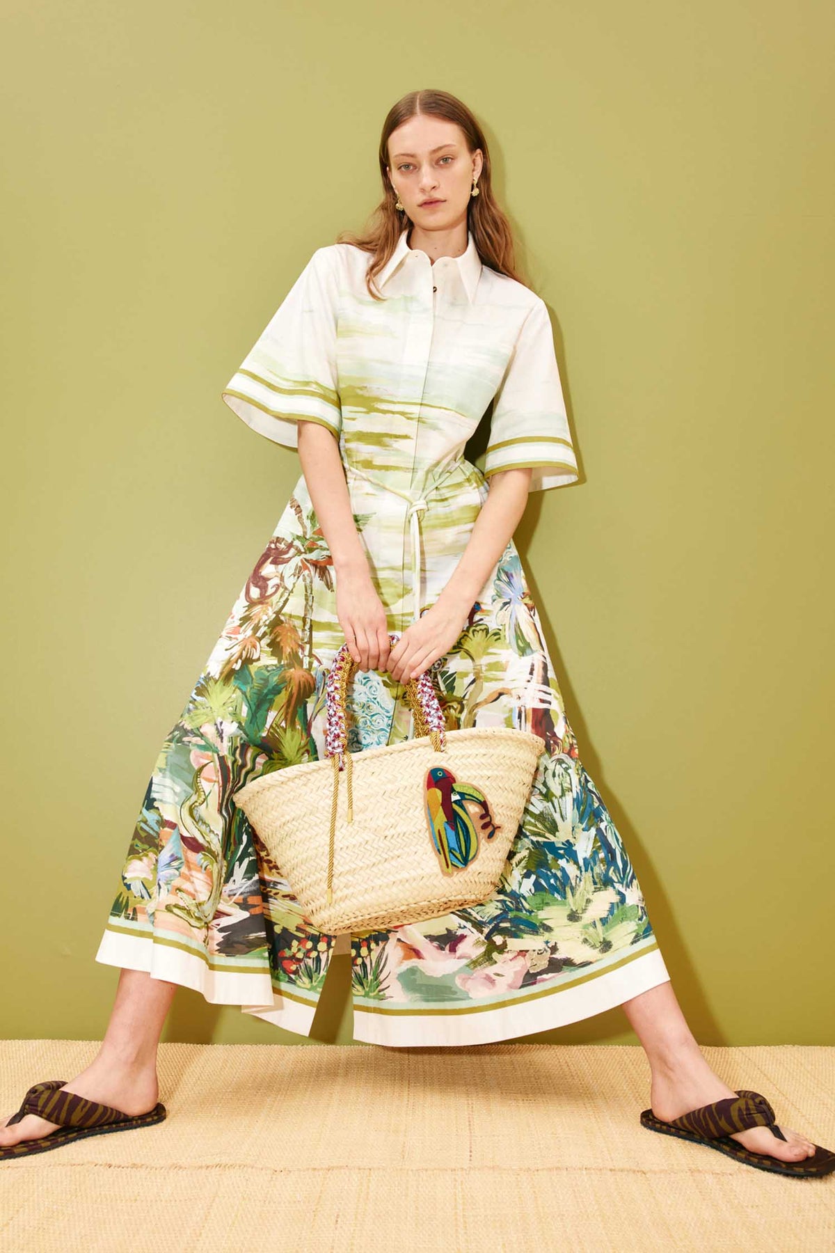Using vivacious jungle illustrations that inspire, the Jungle Boogie Shirtdress from Alémais is crafted from crisp organic cotton perfect for Summer warmth. Shaped for a relaxed fit, it has a classic pointed collar, a concealed front placket with self-covered buttons and a midi skirt. Knot the toggle-ended tie belt at the waist to temper the relaxed fit. Pair with a tote and sandals and take yourself on a Summer adventure.