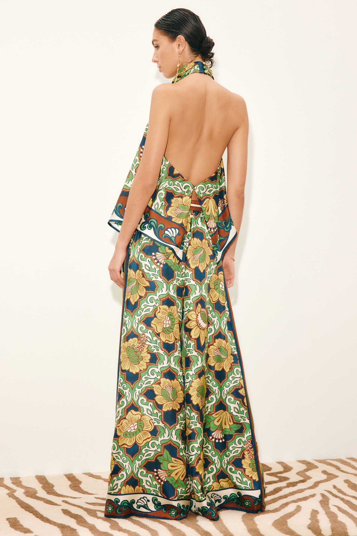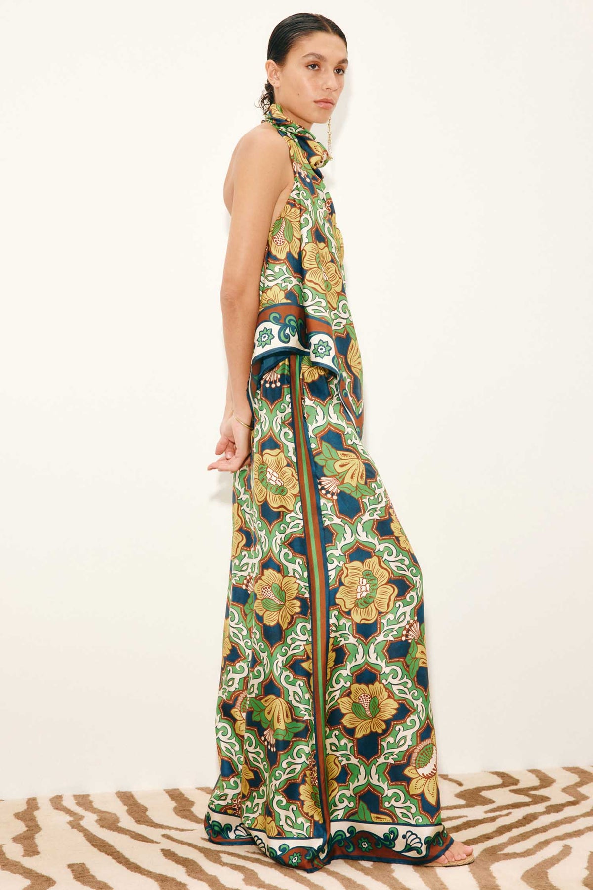 Rendered in liquid-like silk twill, the Liana Silk Top from Alémais is an ode to ornate textile traditions, reimagined through a modern lens. Featuring an artful print in a halterneck silhouette, showcasing a bold interplay of florals and contrast detail. A statement piece imbued with artisanal detail, perfect for sun-soaked escapes and elevated Summer moments. Pair with the matching Liana Silk Palazzo Pant for contemporary balance.