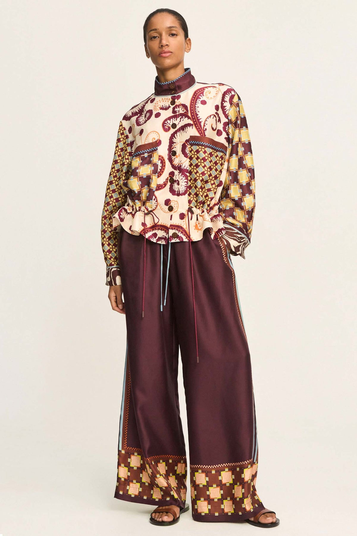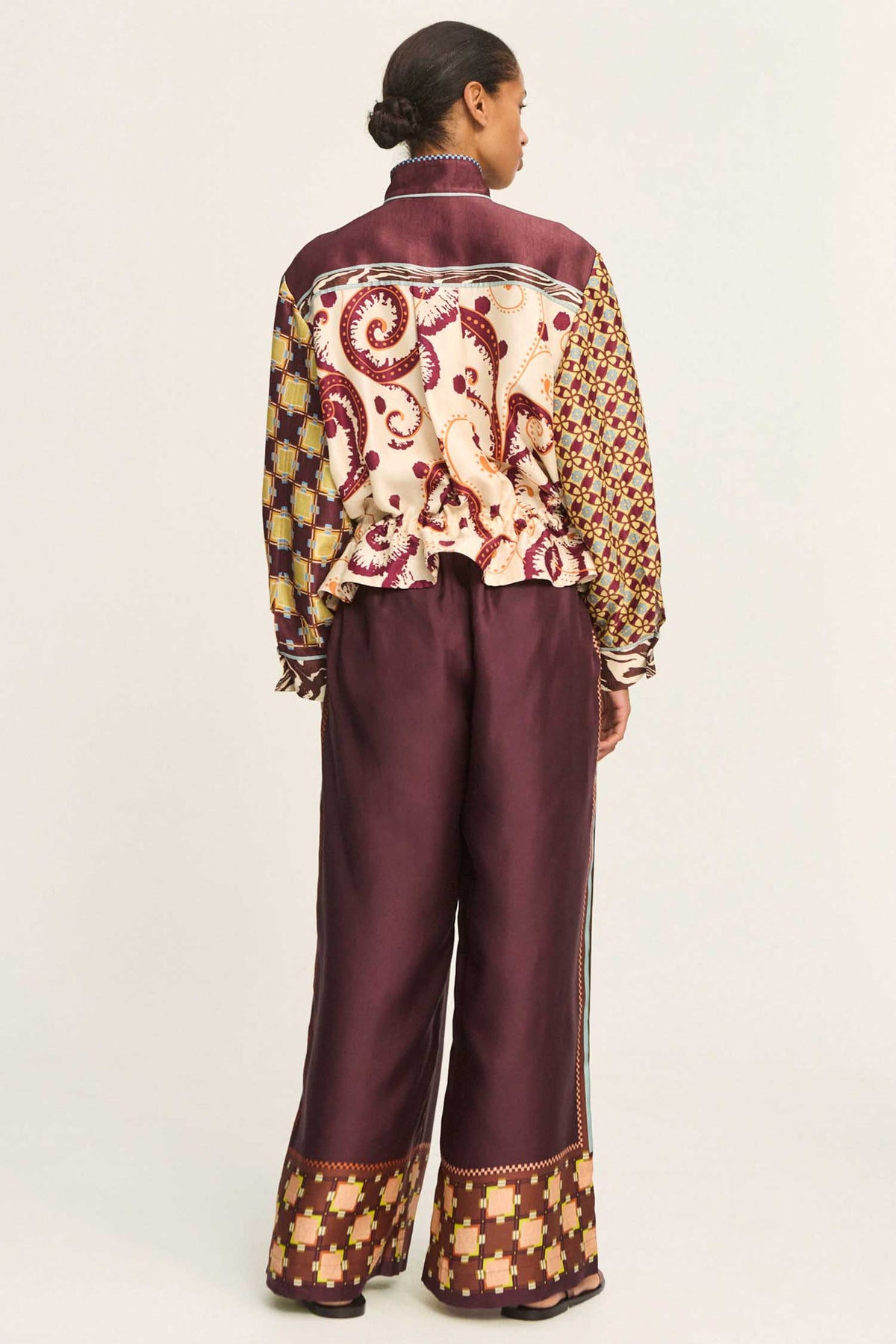 Alémais redefines utilitarian staples through an artisanal lens with the Wilson Jacket. Crafted from luxurious viscose, this jacket is elevated by its abstract kaleidoscopic print. Its relaxed bomber silhouette is complemented with a funnel neck, cuffed sleeves and patch pockets at chest. The drawstring channel with adjustable bespoke toggles adds a peplum edge to the stunning jacket. Style yours with your everyday pants or denim.