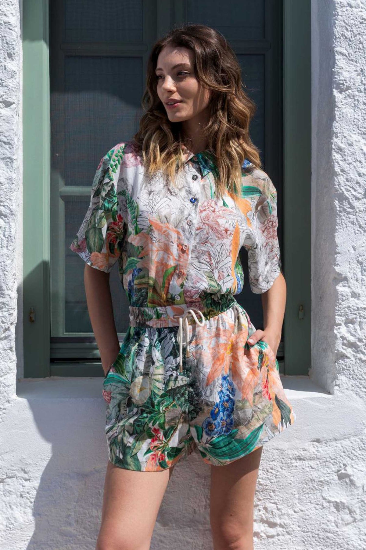 The Andrea Short in Tropicana from Kachel is both fun and playful. Features drawstrings cord and an elastic waistband making it easy and comfortable. Designed with the Tropicana print, these shorts are perfect for the summer. Pair this with its matching counterpart, the Carla Shirt.
