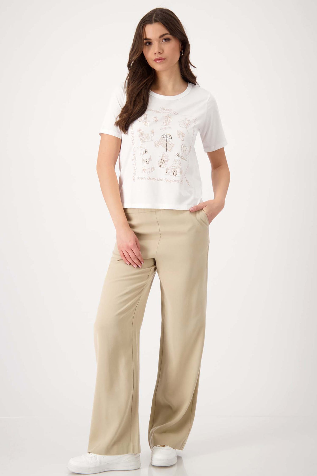 Dreaming about all the things you need your next holiday? The Hand Drawing Collage Print T-Shirt from Monari is what you're looking for. It's made from high quality cotton, ensuring a comfortable and soft wear. Features a round neckline and short-sleeves, allowing easy movement. Decorated with a unique print which has partial shininess, keeping you stylish and a great statement to a casual outfit. Pair this with your favourite pair of jeans and sneakers.