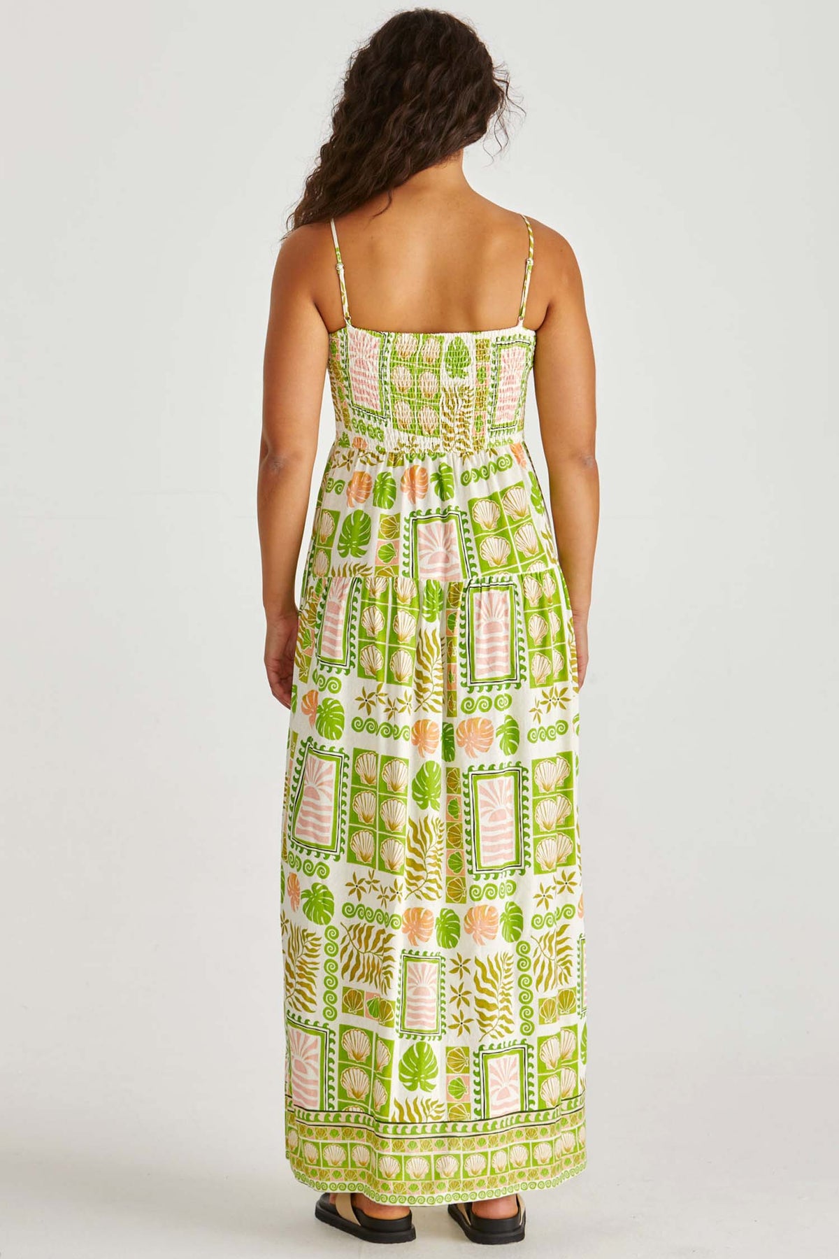 The Emmett Maxi Dress from SASS is made for statement summer days. Designed with their exclusive Green Shell Patchwork print, it features a ruched bust and shirred back panel and is equal parts fun and flattering. Pockets make it effortlessly wearable. A feel-good dress that turns heads with ease.