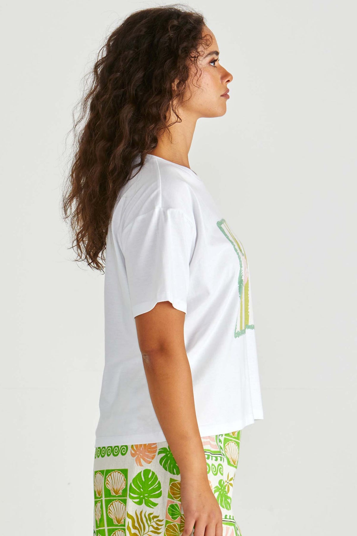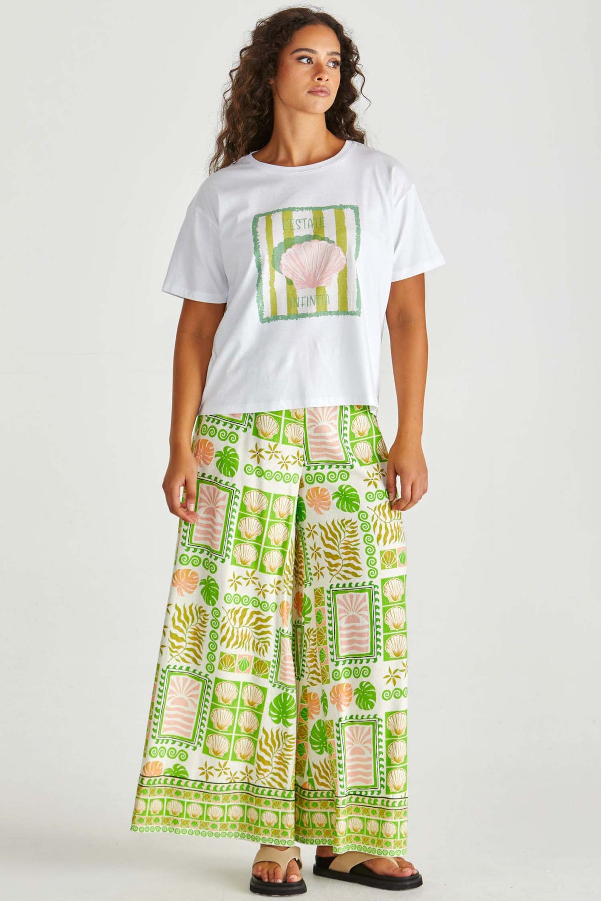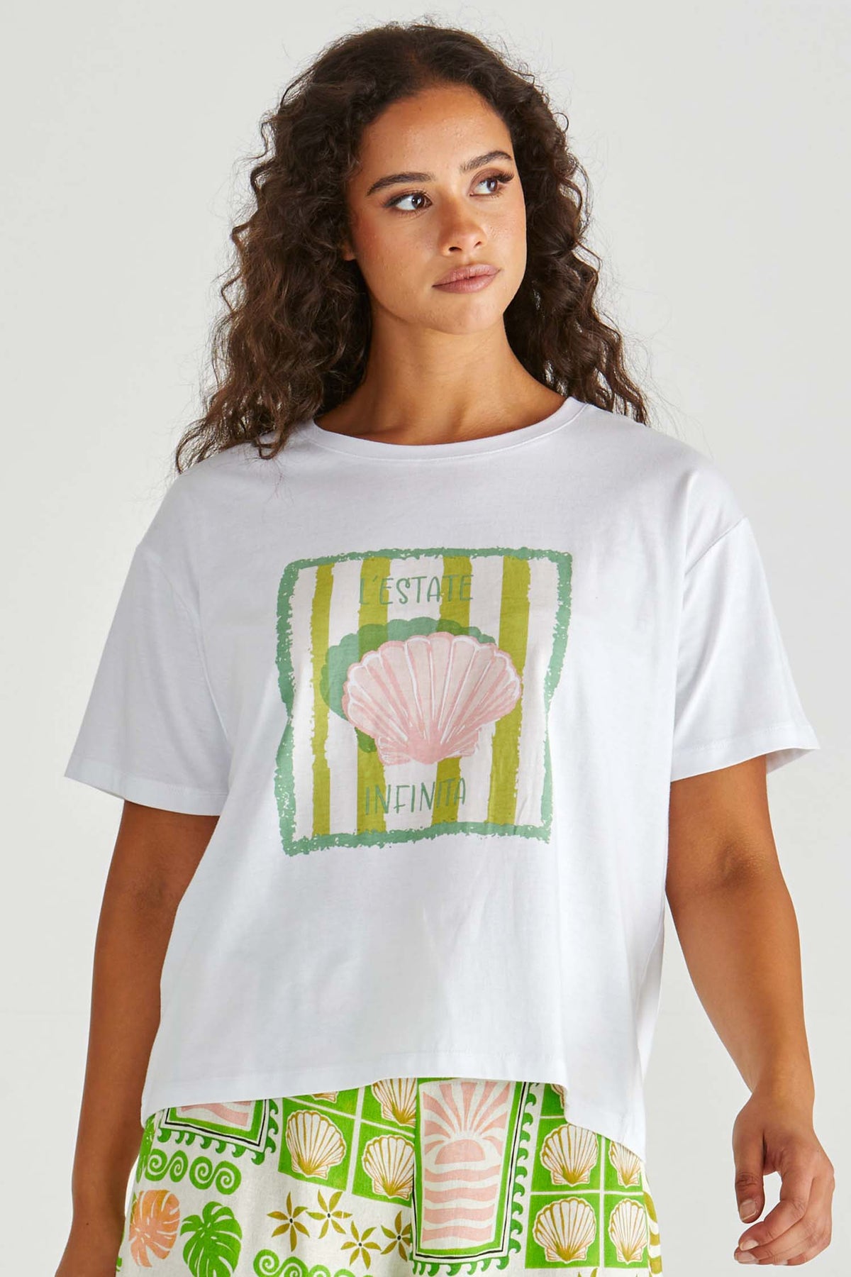 The Cynthia Tee in Seashell Stripe from SASS is where comfort meets cool. Crafted from soft cotton jersey in an exclusive Seashell Stripe print, it features a dropped shoulder for an effortlessly relaxed fit. The kind of tee you will reach for again and again. Classic, casual and just a little bit fun.
