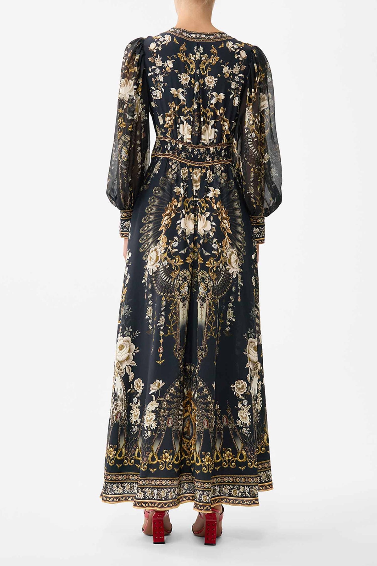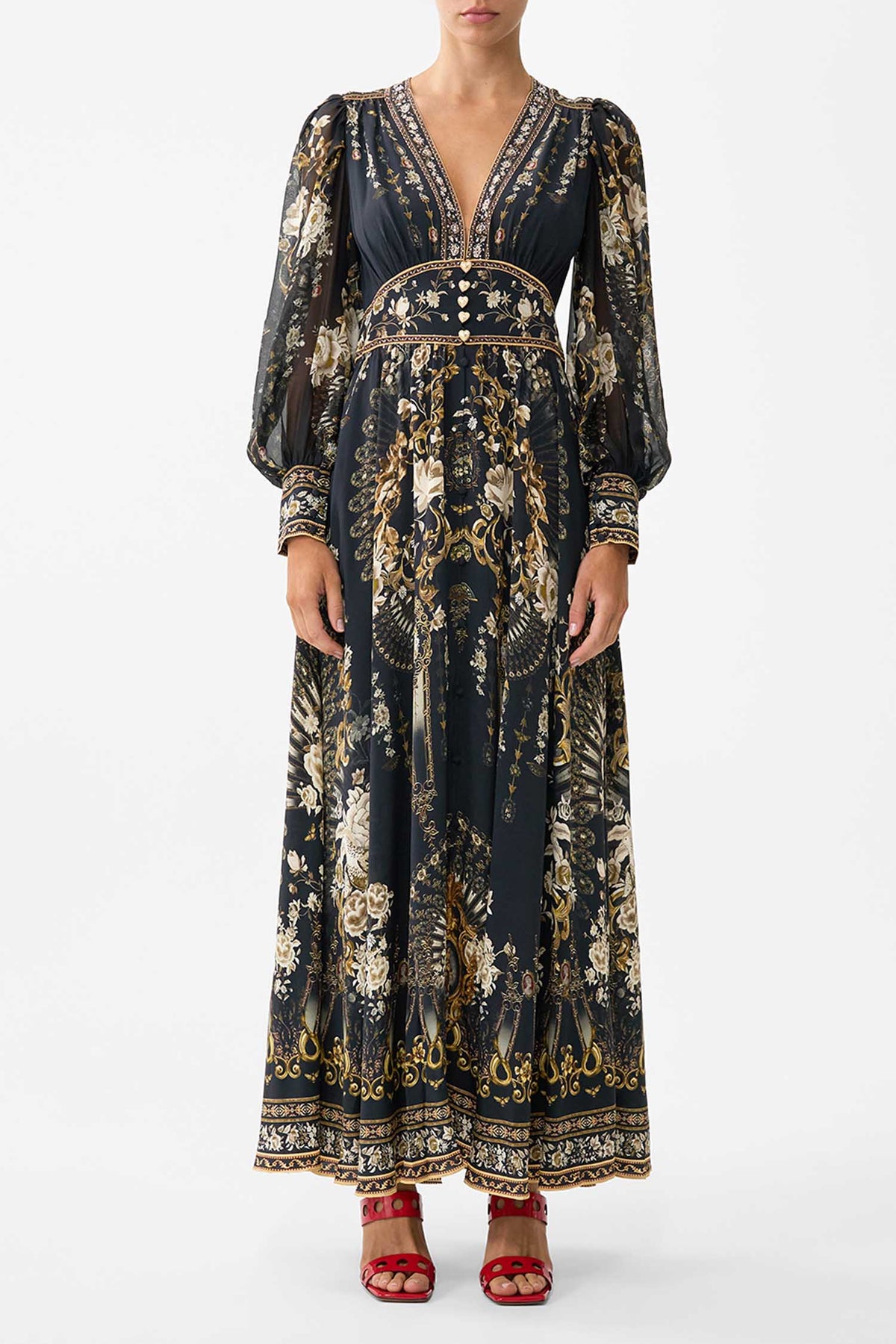 The Shaped Waistband Dress with Gathered Sleeves in Flamenco Folklore by Camilla.
