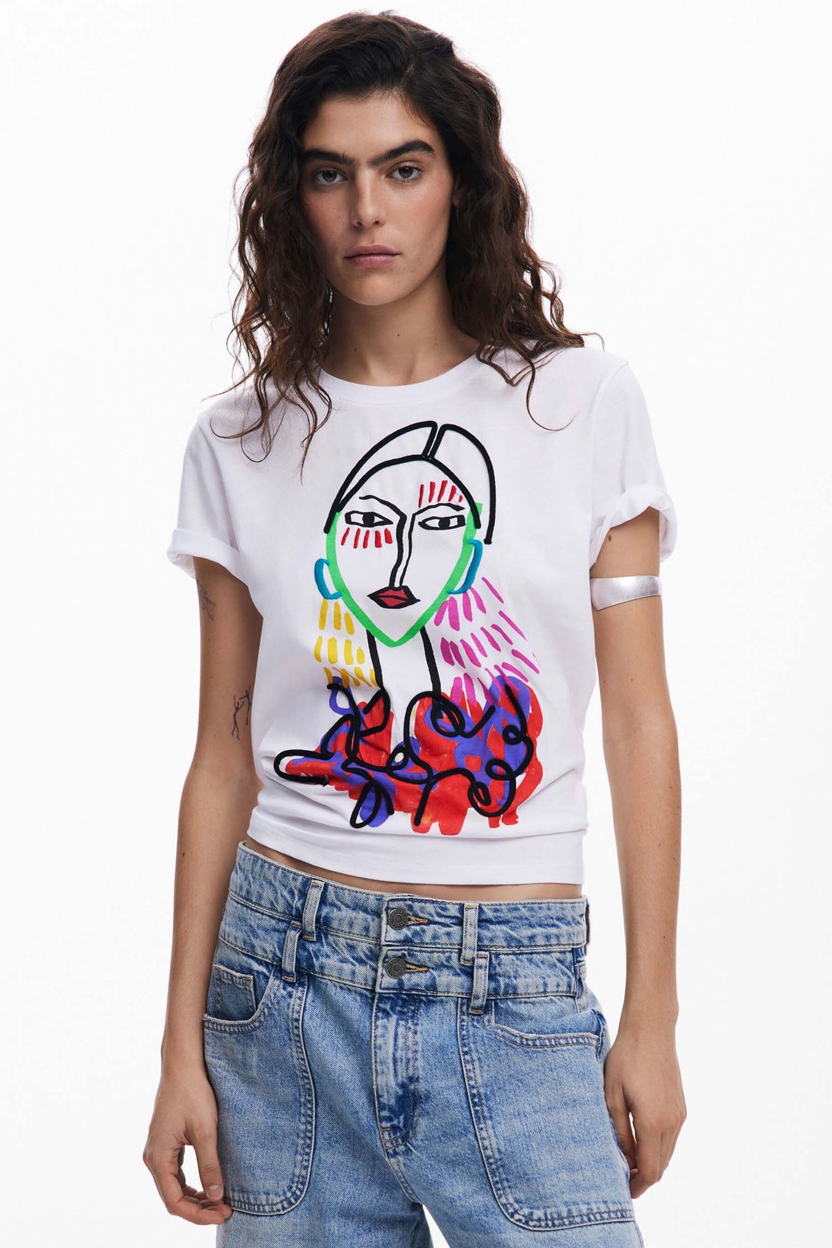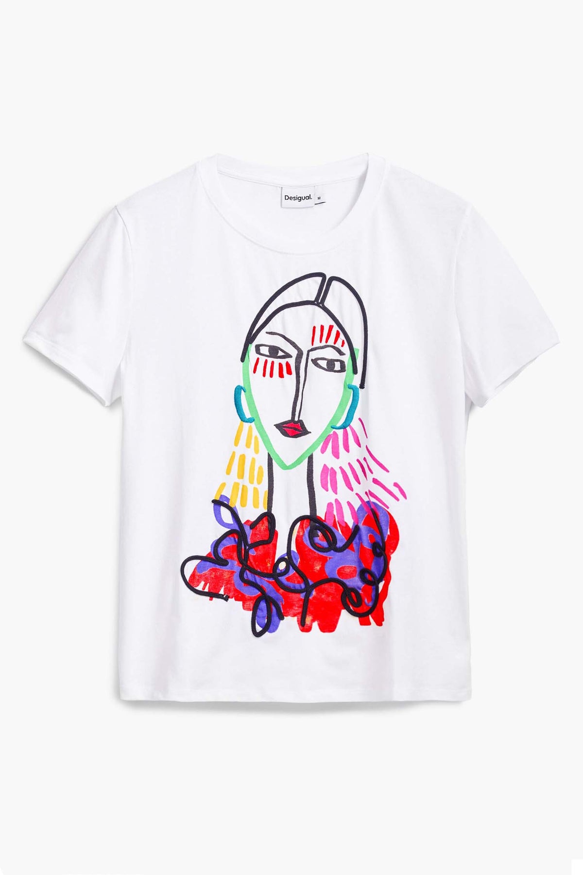 Playful and bold, this Arty Female Figure Print T-shirt from Desigual brings art to your everyday wardrobe. Cut from soft cotton with a classic round neckline, it’s adorned with a striking arty female figure print in vivid pops of red, green, purple, and yellow.