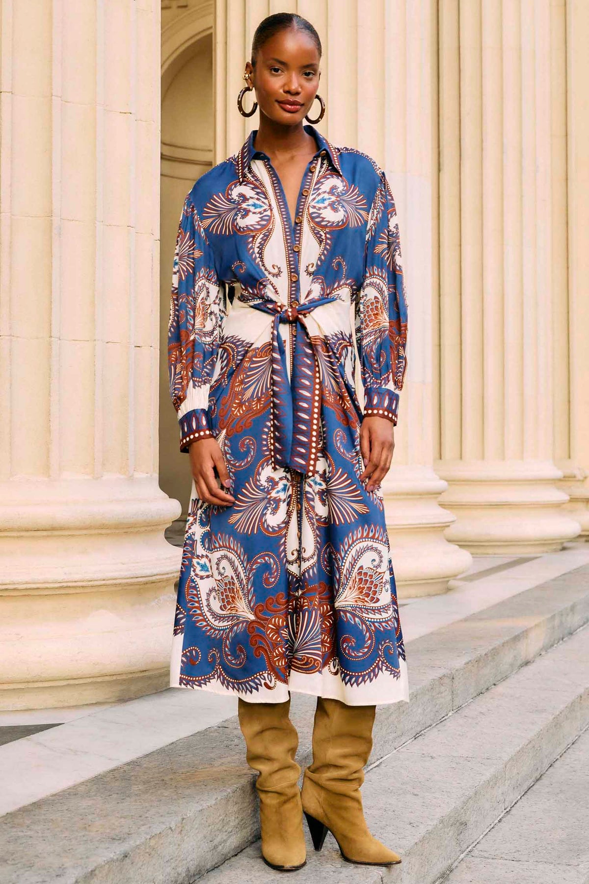 The Arabesque Scarf Blue Midi Dress by Farm Rio.