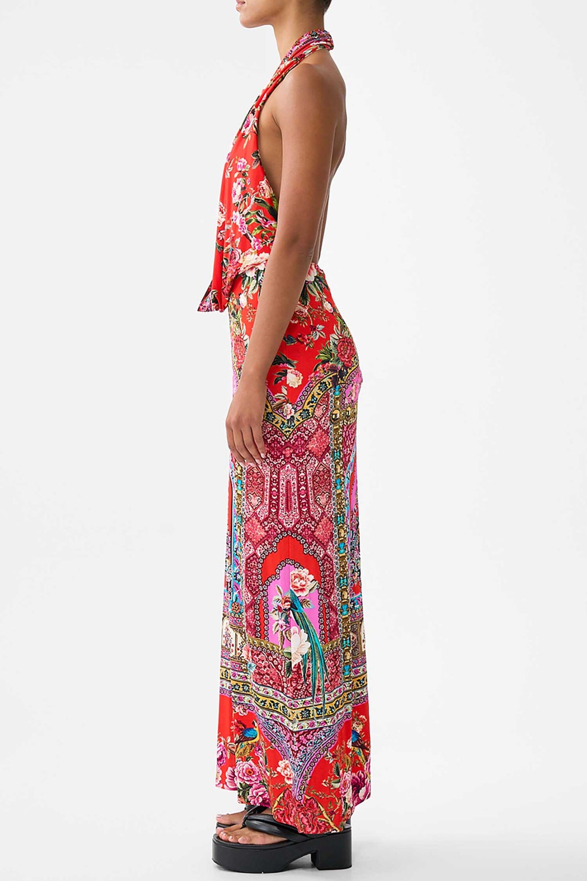 The Deep Cowl Plunge Dress in Heirloom Empire from Camilla is a handcrafted silhouette designed by their in-house artisans. Reimagined in an exclusive limited edition print, this draped jersey dress is designed to honour the feminine form. It features a deep plunging cowl neck and is cut in a fitted, halter neck style.