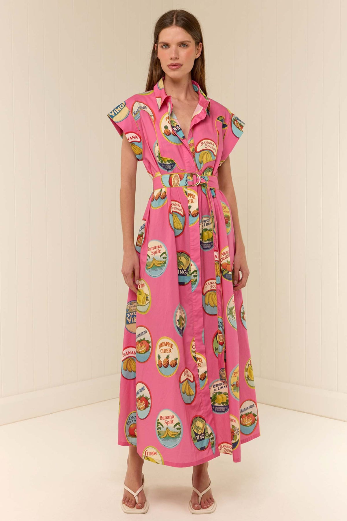 The Siren Dress from Palm Noosa is crafted from a premium Cotton Poplin that features their exclusive La Fruta print. With a structured point collar and adjustable D-ring belt, the Siren Dress offers a crisp silhouette, finished with a western-style yoke and contrast piping for a relaxed yet elevated look. Pair with a slim heel or a Summer wedge to suit the occasion.