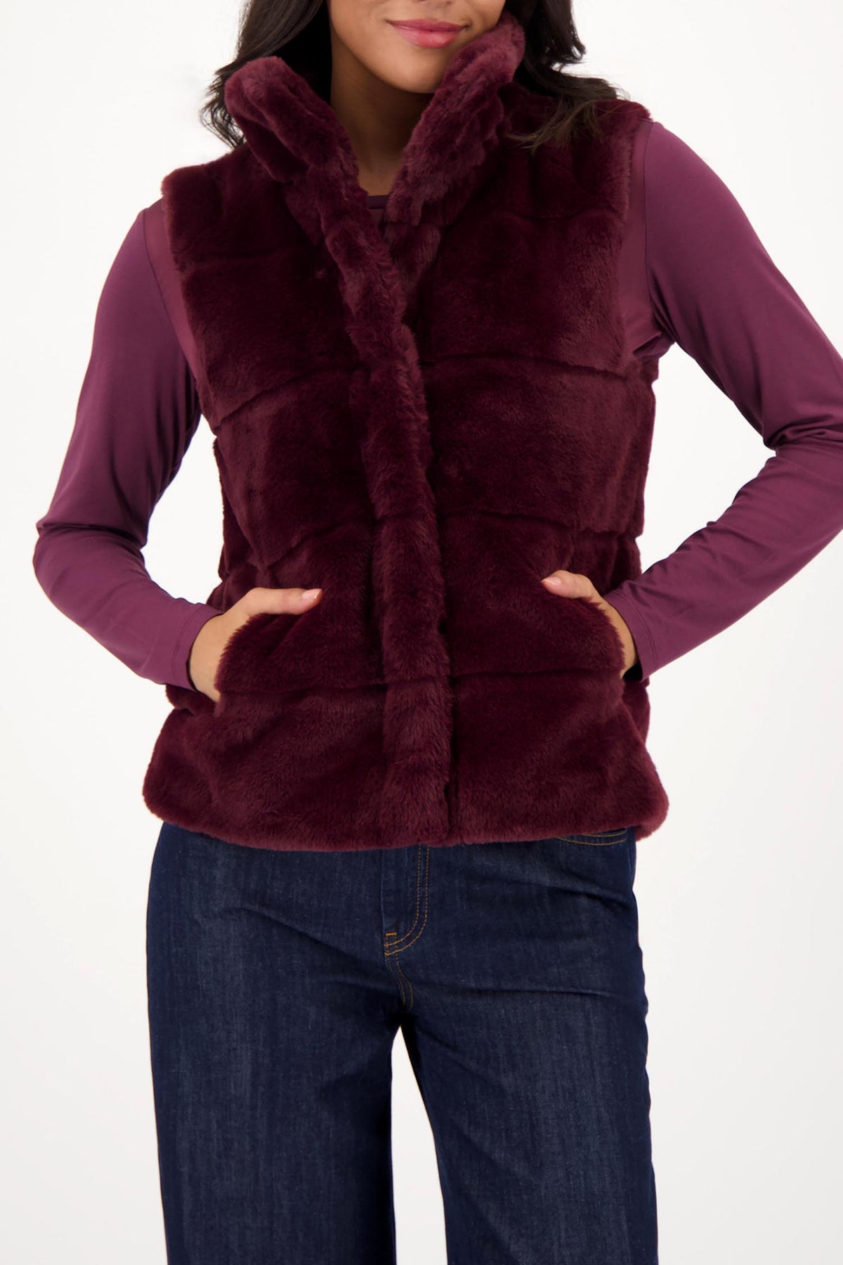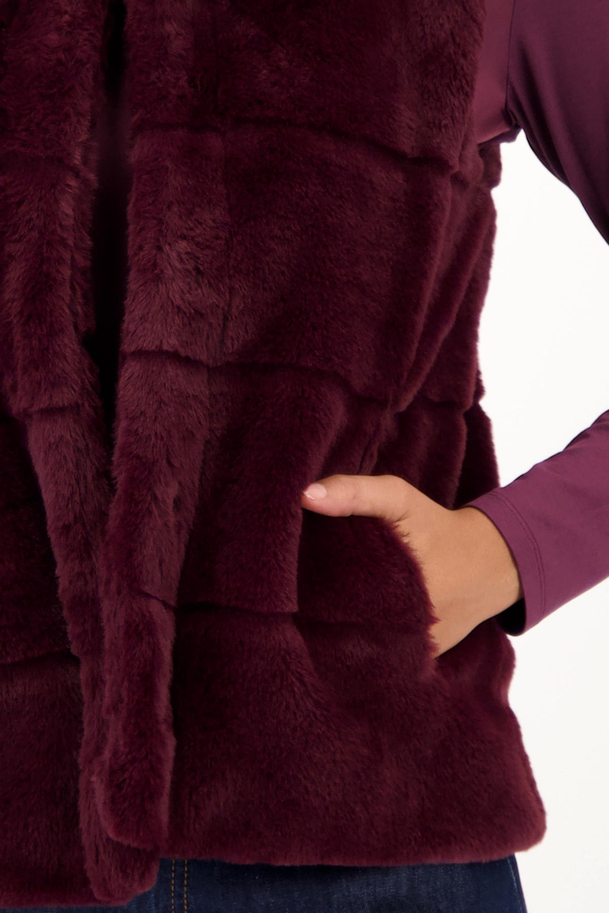 Long Line Faux Fur Vest in Bordeaux