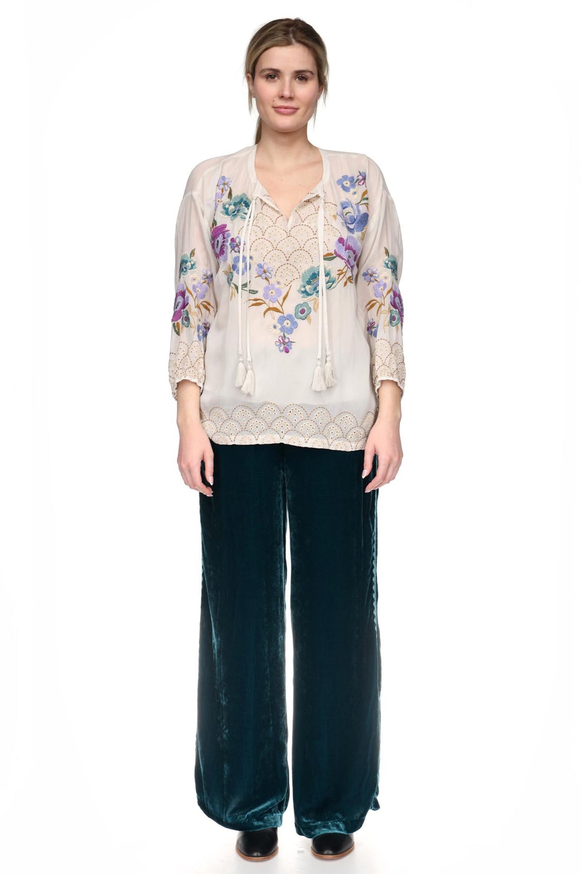 The Carmin Margot Blouse by Johnny Was.