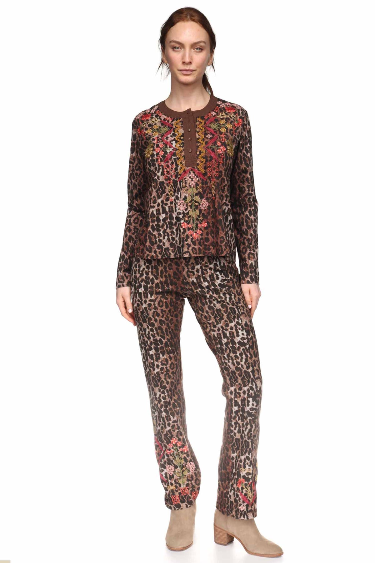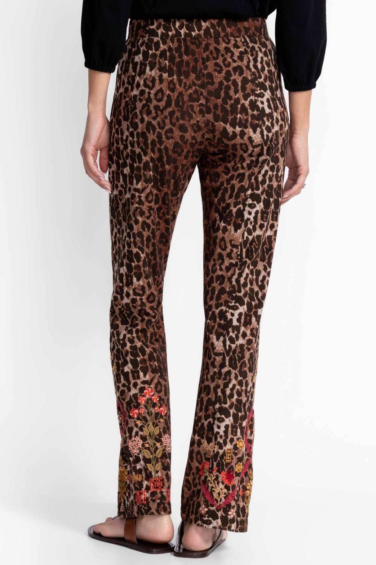 The Malaya Baby Boot Leggings from Johnny Was are crafted from a breathable cotton blend with a hint of stretch. Featuring an elasticated waist and bootcut leg line, these leggings are adorned with a vibrant animal print and are finished with intricate embroidered details. Pair with a black linen button-down and western-style boots for a fun night out with friends.