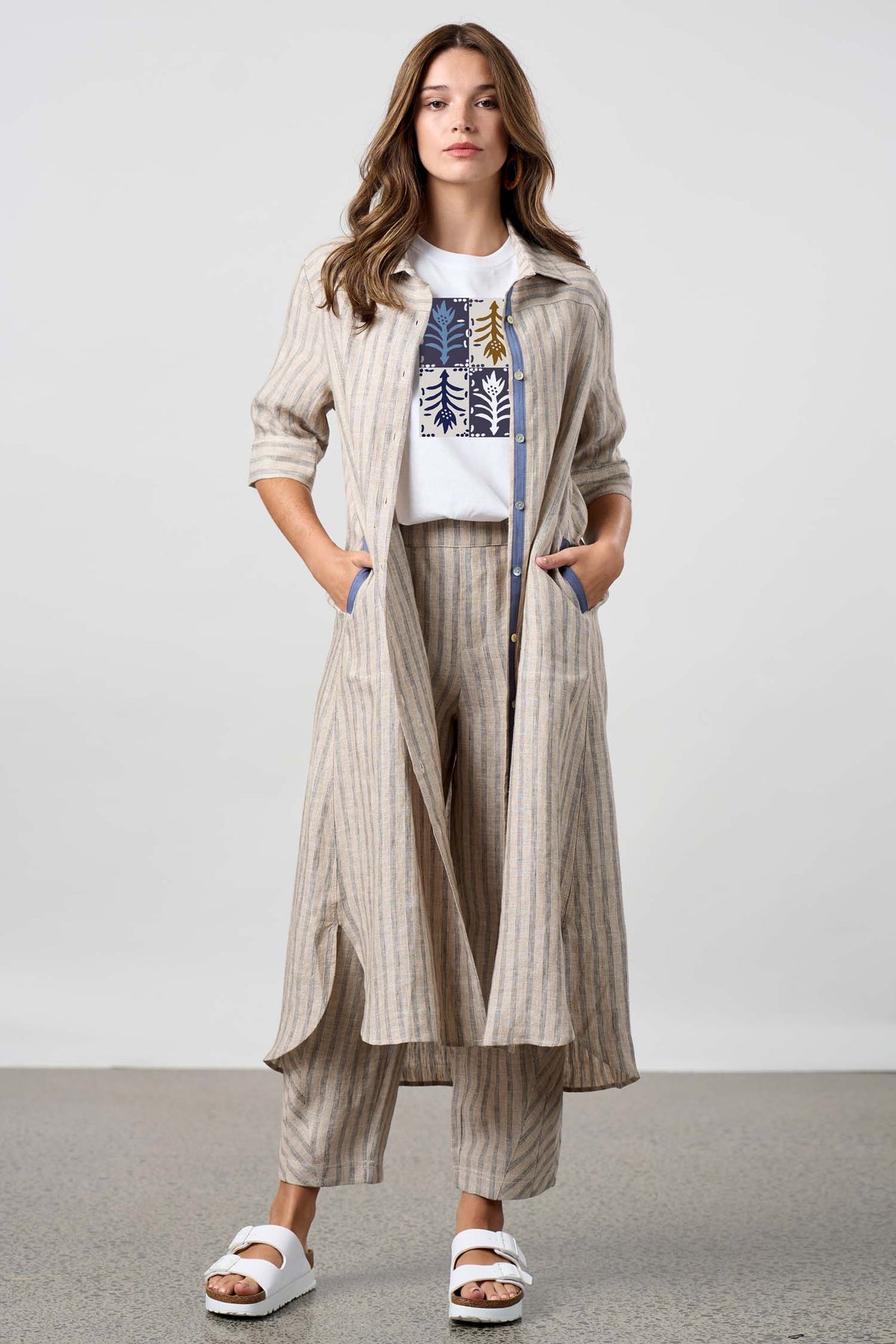 The Interval Pant in Pumice from Madly Sweetly is a tulip-styled pant perfect for Summer. With a flat front and an elasticated waist, it offers a seamless fit designed for movement (and compliments). The side seam panels and pockets in contrast stripe directions adds a touch of uniqueness to the beautiful pant. Pair with the matching Interval Shirt Dress in Pumice for an easy-breezy weekender style.