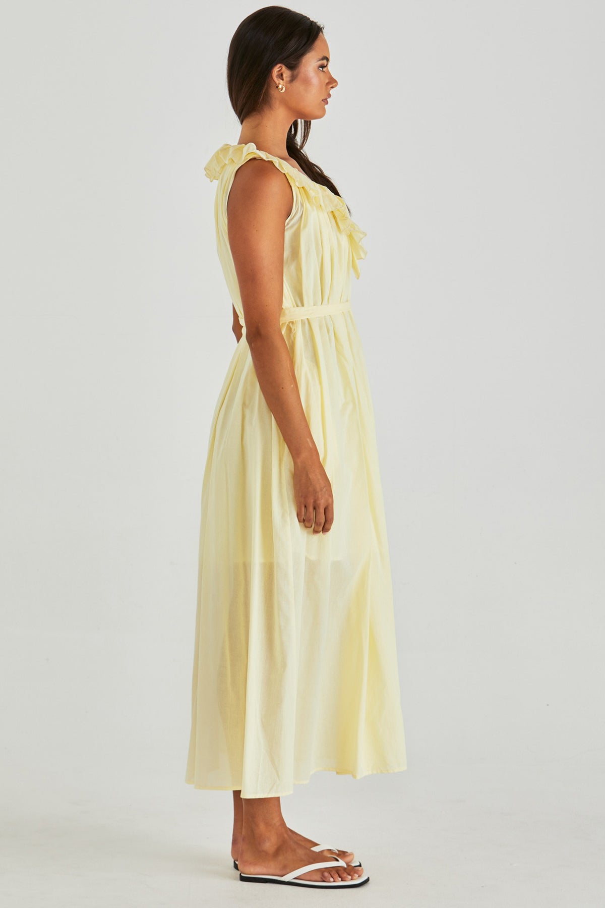 The Lilla Ruffled Neck Dress in Butter Yellow by SASS.