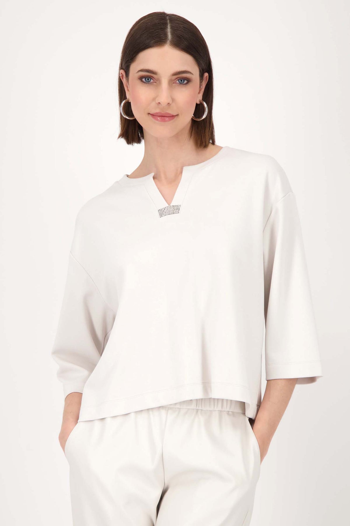 The 3/4 Sleeve Top w Crystal Detail in Oat Milk by Monari.