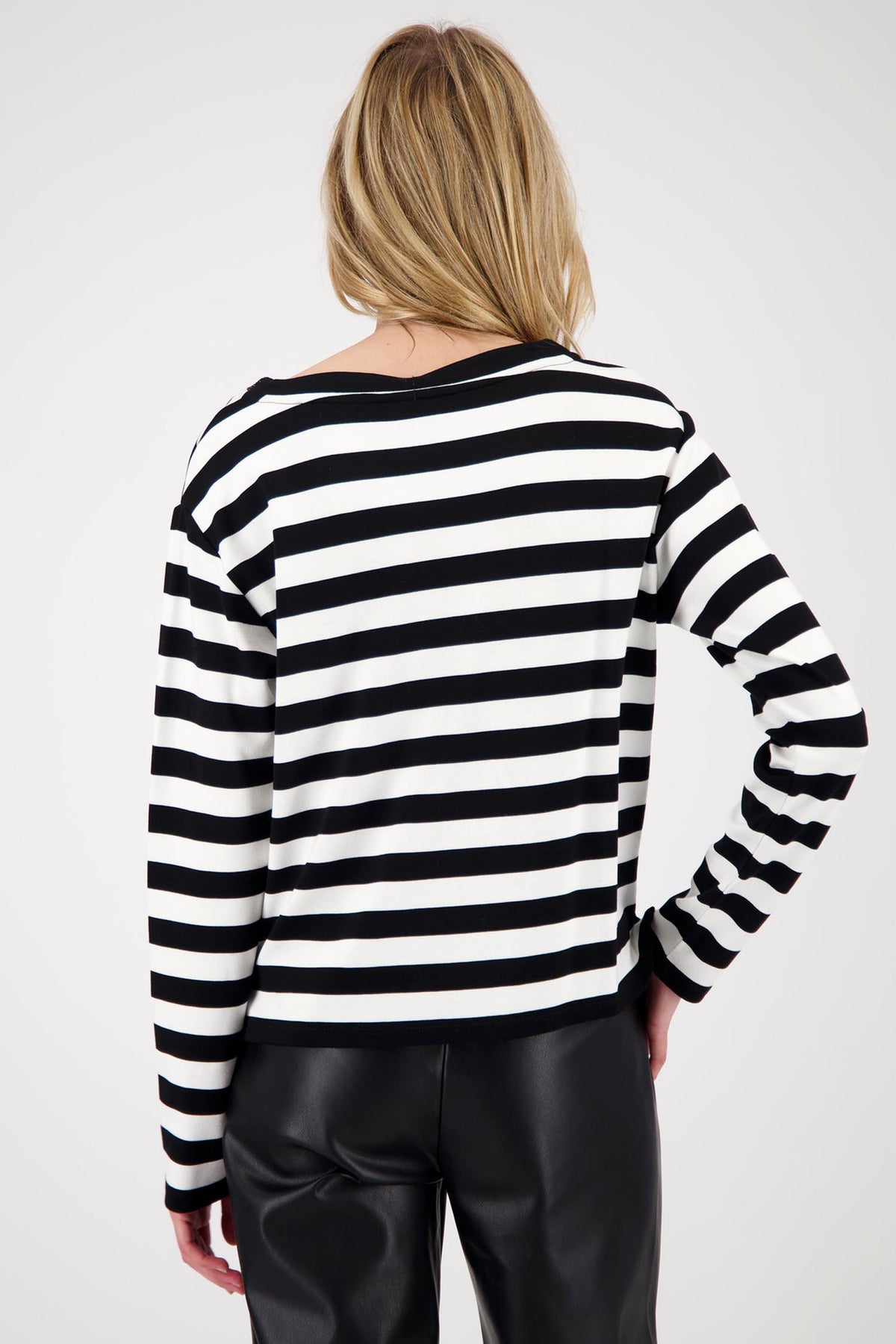 This Stripe Top w Crystal Neckline from Monari combines comfort and exquisite craftsmanship. Its shimmering rhinestone embellishment will make you look elegant no matter the occasion. Lightweight, stretchy viscose lends breathability and softness, while the timeless stripe pattern lends the unmistakable Monari charm.