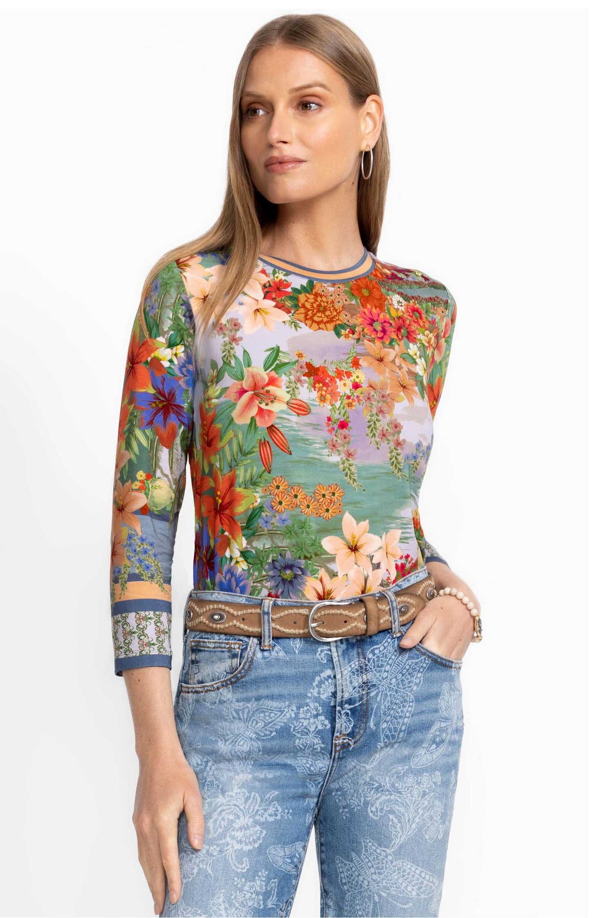 The Asteria Janie Fav 3/4 Sleeve Crew Neck Tee by Johnny Was.