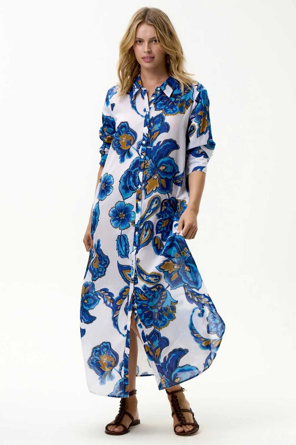 The Daisy Dress in Broome from One Season captures the carefree elegance of coastal dressing. Cut from featherlight cotton, this ankle-grazing style is rendered in one of the brand’s painterly floral prints. The classic shirtdress silhouette is refined with a neat collar, three-quarter sleeves and a full-length button placket, offering the option to wear it open over swimwear or styled solo as a sun-kissed statement.