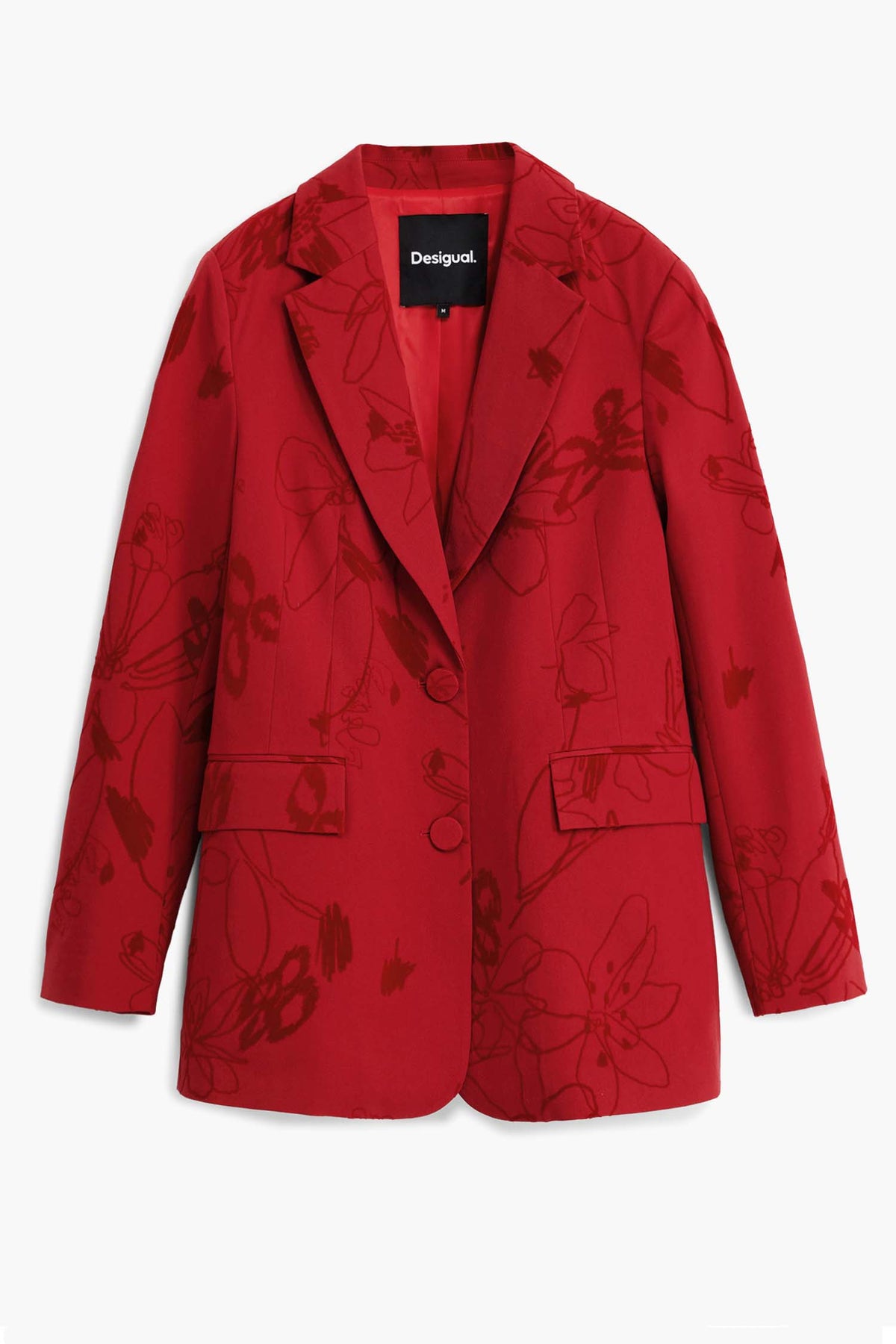 The Flockarty Blazer w Velvet Details in Rojo by Desigual.