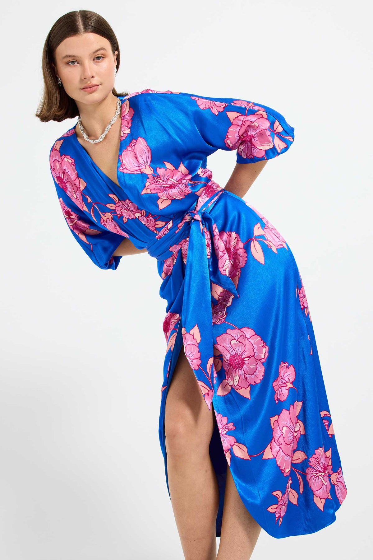 Margot Wrap Midi Dress in Cobalt Floral