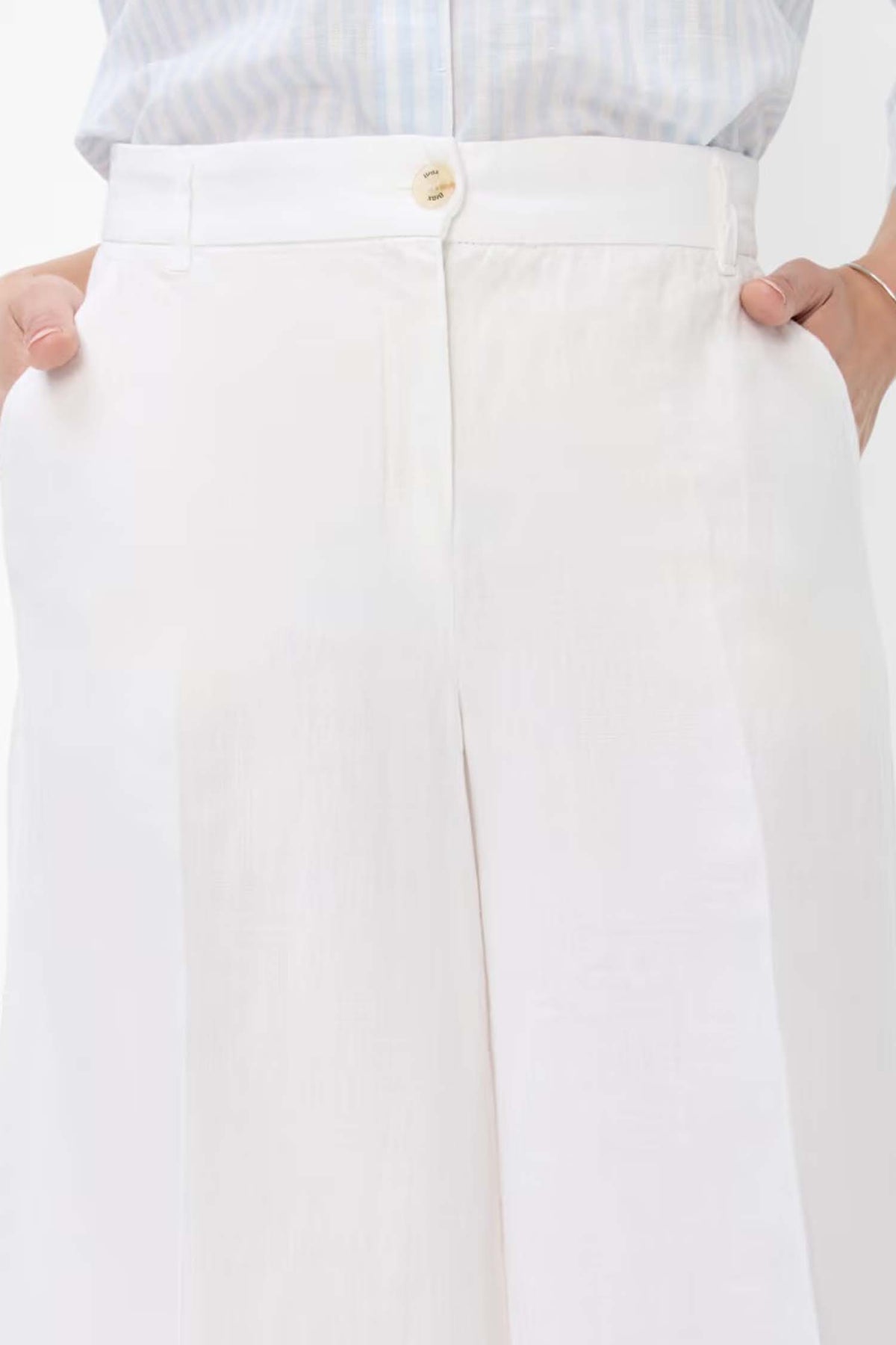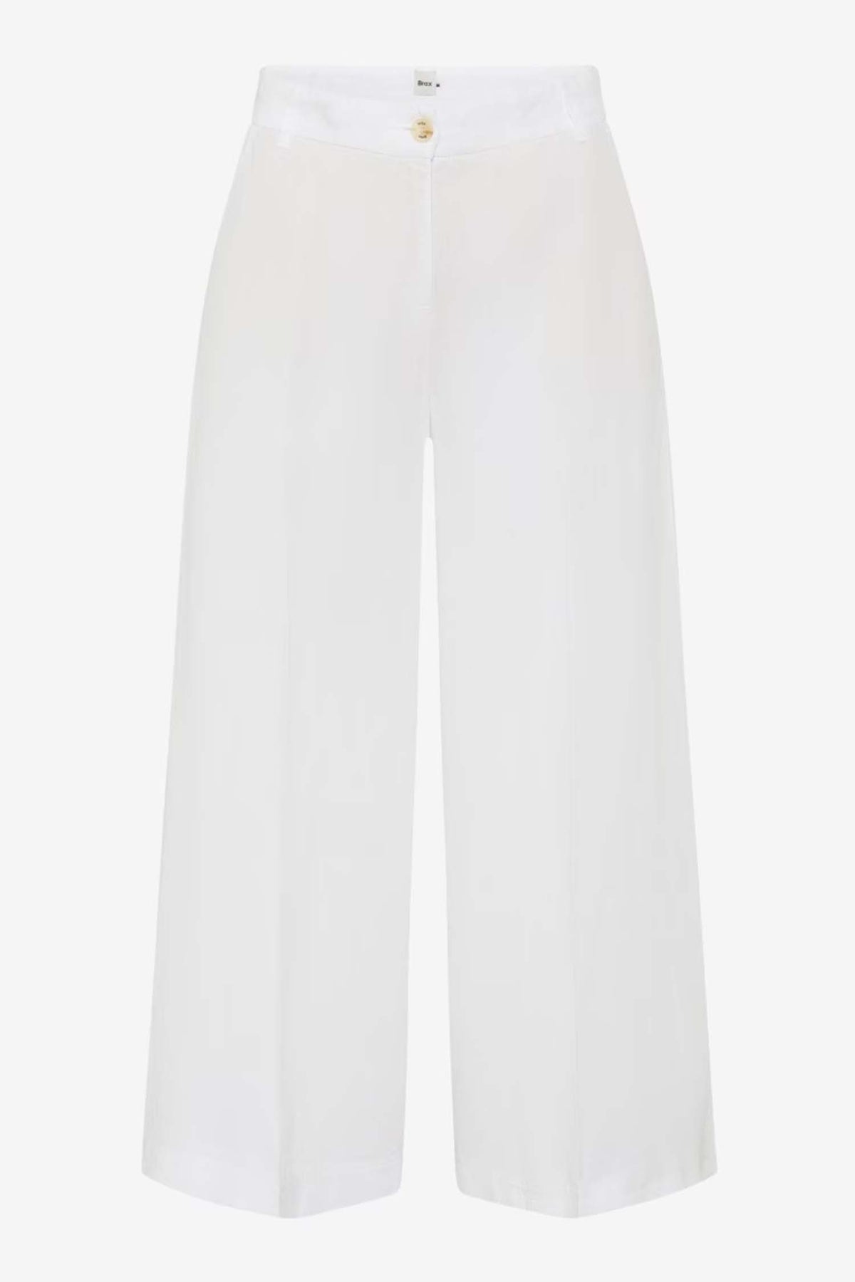The Melli S Wide Chino Pants from Brax reinterpret the classic wide leg pant in a modern and feminine way – perfect for women who want to make a clear statement with their wardrobe. This elegant style impresses with its wide silhouette and features a partially elastic waistband for a flexible fit. The flat front emphasises its clean look, while details such as precise creases and the combination of French pockets with welt back pockets lend the design a classic touch.