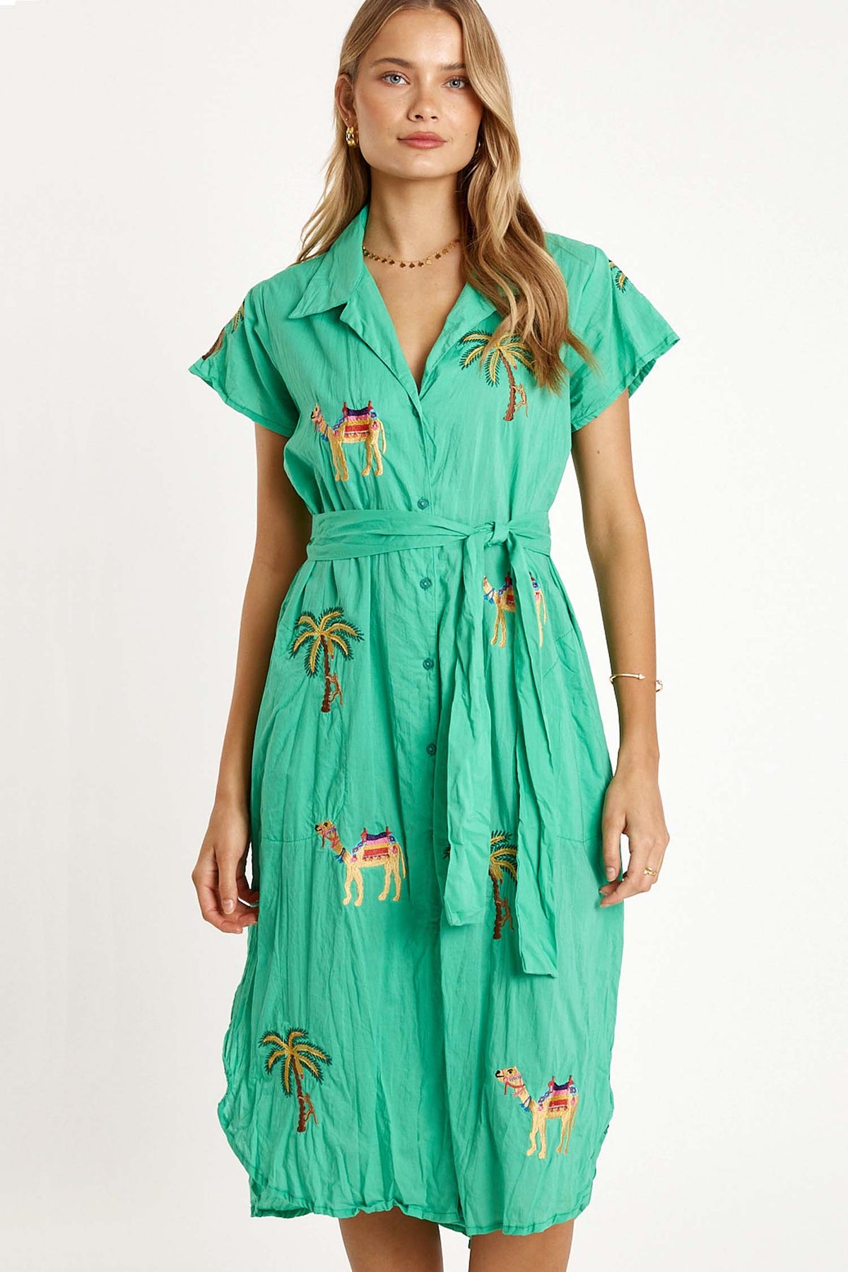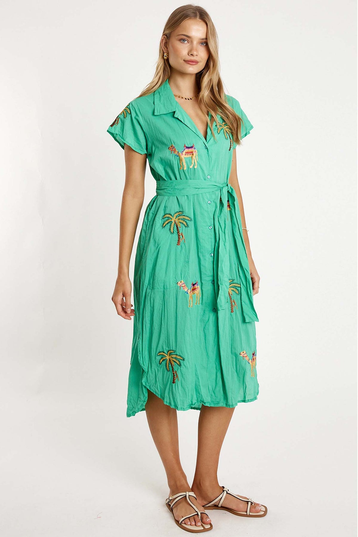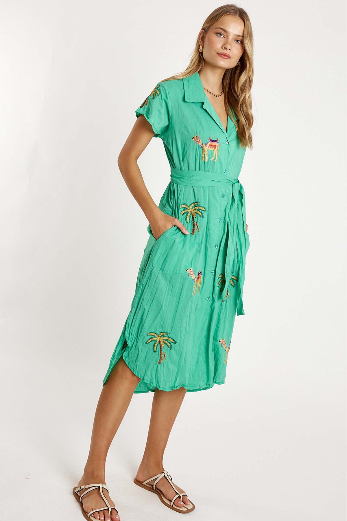 Effortlessly cool and beautifully detailed, the Sahara Shirtmaker from LulaLife is your throw-on and go dress for easy everyday style. Crafted from 100% cotton, it is breathable, lightweight and perfect for warm weather. The embroidered motifs add a gorgeous handcrafted touch, while the open-neck collar and button-through front keep the look relaxed and modern. Designed with a below-knee length, curved hem and practical side pockets, it also includes a detachable waist tie so you can wear it loose or shaped.