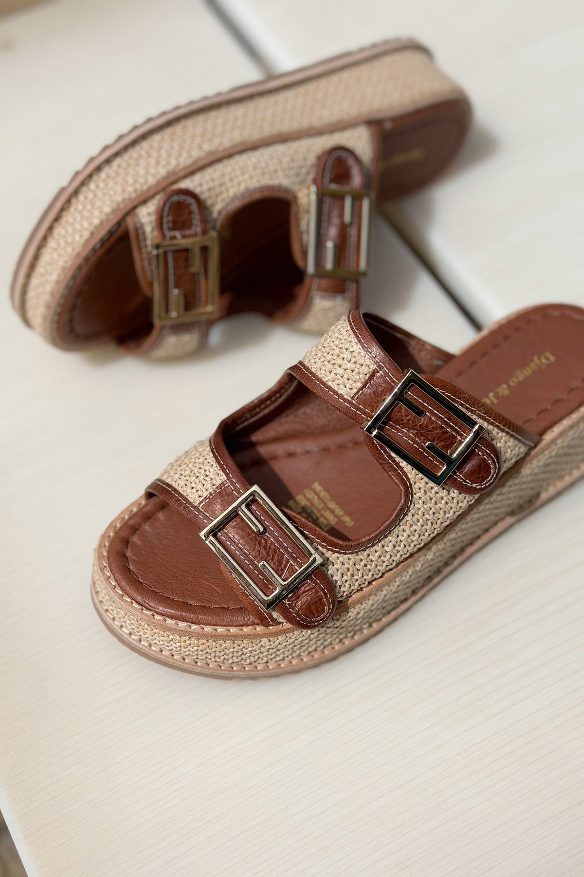 The Vexta Leather Sandals in Chocolate Natural by Django & Juliette.