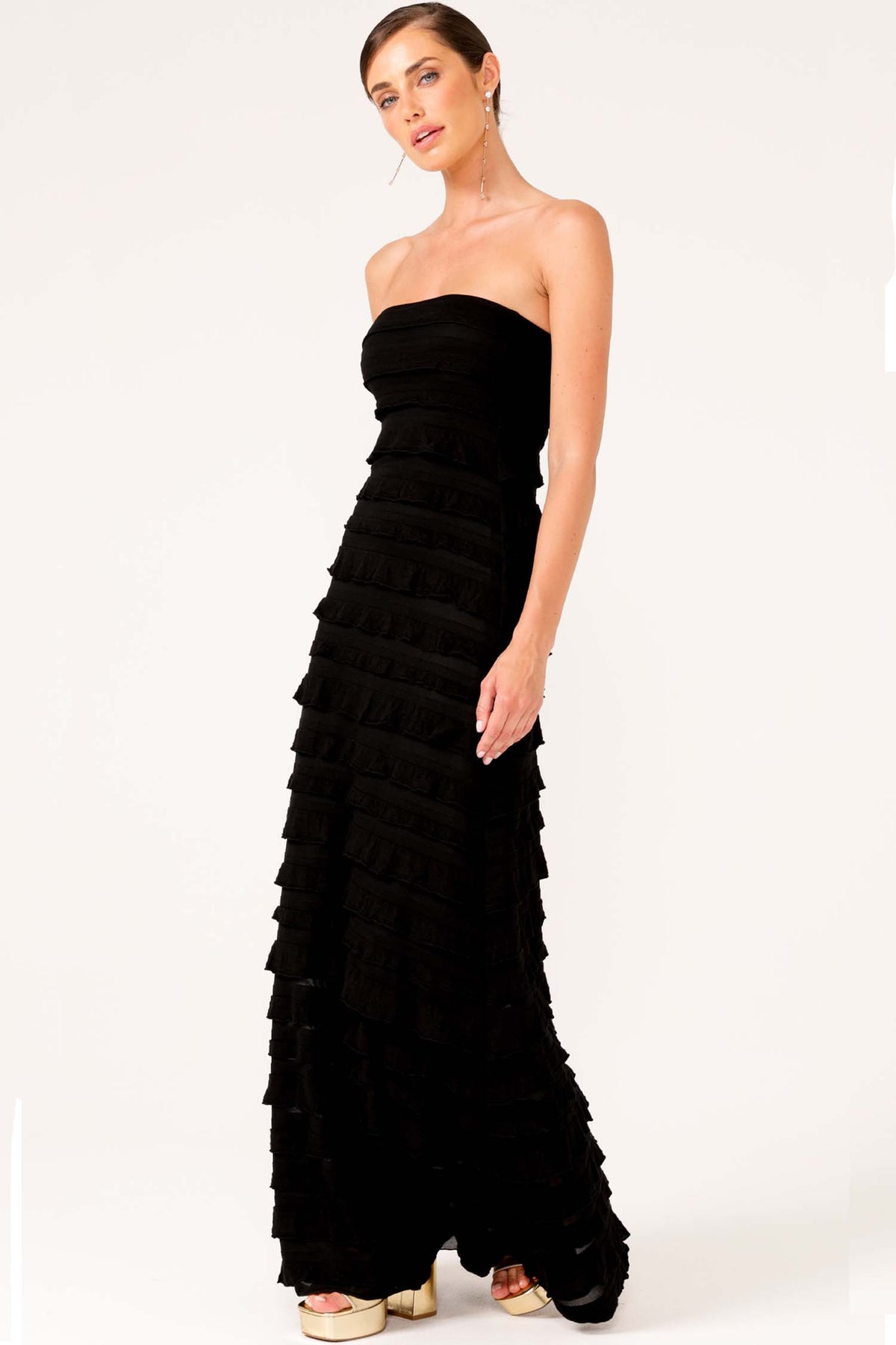 The Maddison Maxi Ruffle Dress in Black by Sacha Drake.