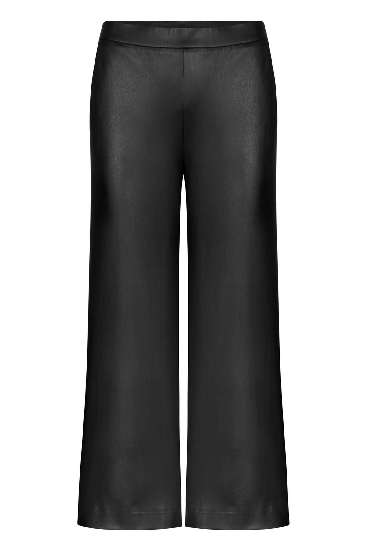 Made in Europe from highly elastic vegan nappa leather, these wide-leg pants offer a soft, smooth feel with a beautifully elegant appearance. The pull-on design ensures all-day comfort, while the cropped 6/8 length keeps the silhouette fresh and contemporary. Slanted front pockets and imitation welt pockets at the back add tailored detail, making this a standout piece that transitions effortlessly from day to night.