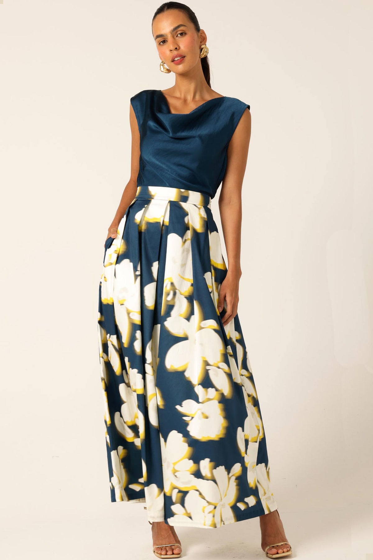 The Chamonix Skirt in Navy Yellow Flower by Sacha Drake.