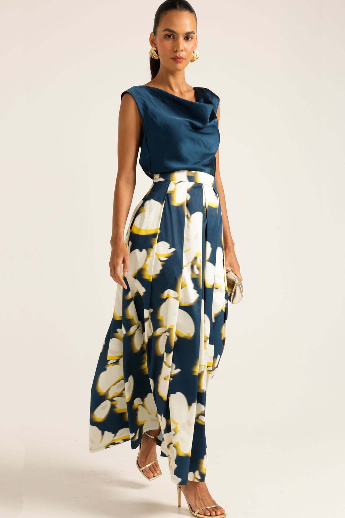 Made from a luxurious polished cotton in an exclusive Sacha Drake print, the Chamonix Skirt features front pleats, a flared A-line shape, and maxi length. With an elasticated back and side zip for comfort and ease, this Australian-made style transitions effortlessly from day to event dressing. Pair with a blue top or a crisp white shirt for maximum impact.