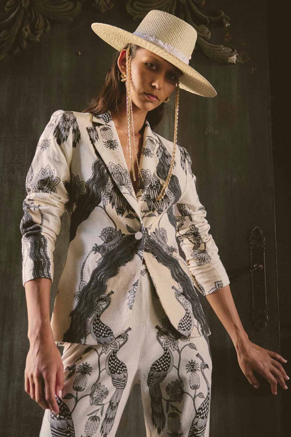 The Leandro Contrast Lace Stretch Blazer in Imperial Stone by Once Was.