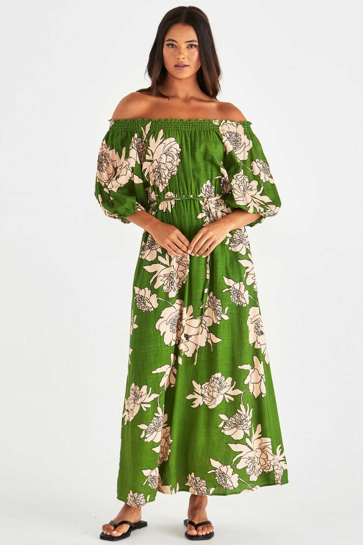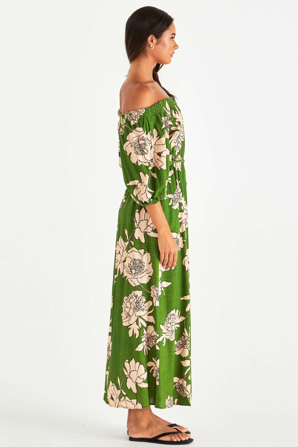 Meet Antonie Off-Shoulder Dress in Moonflower by SASS. Where comfort meets Summer holiday. A dress with elasticated off-shoulders and made be cool and effortless. Be able to walk freely with its relaxed material and fit, that makes you look good and feel good. With SASS' exclusive green print, paired with light jewellery and sandals, it's perfect for sunny days out and strolls on the beach.