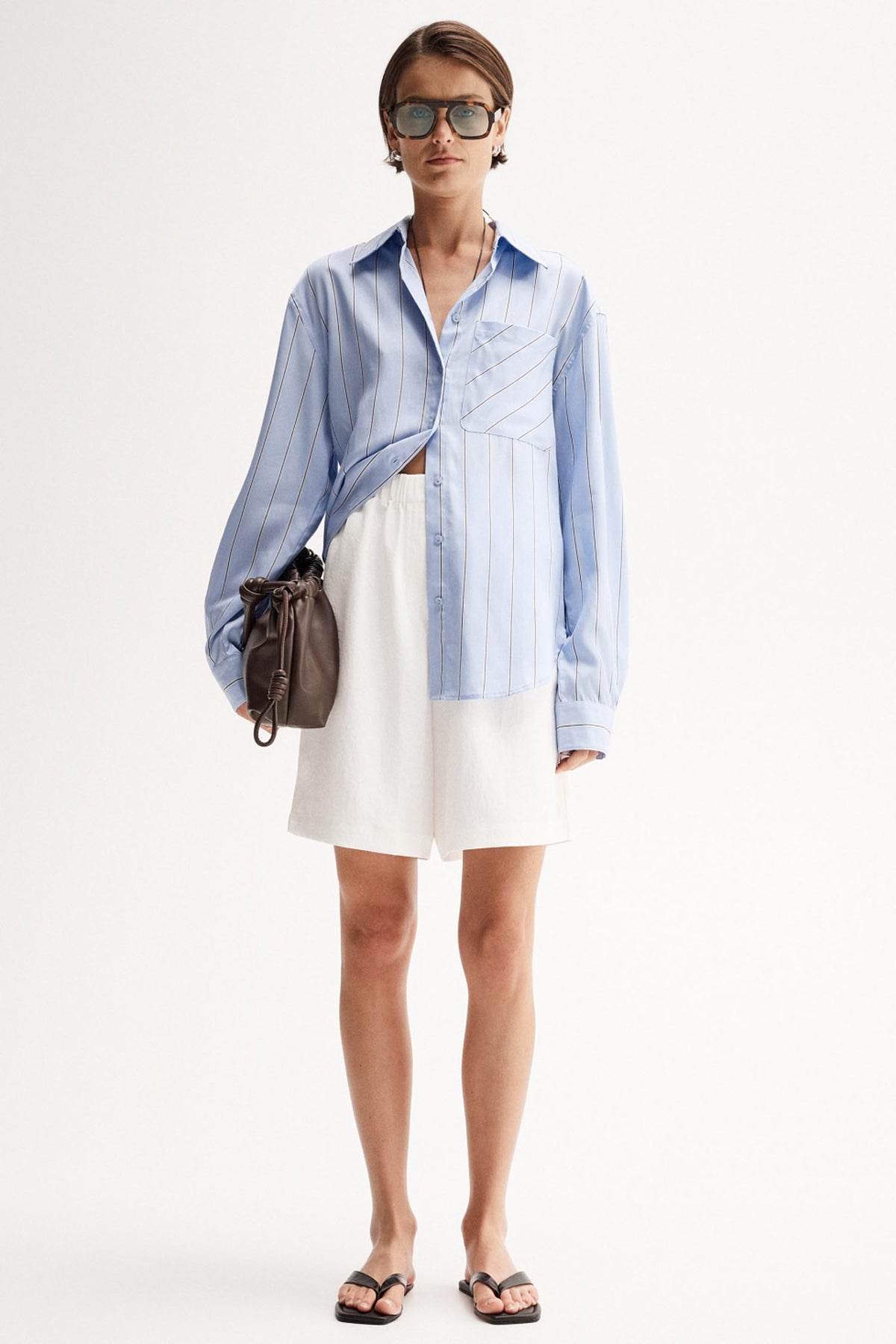 A relaxed shirting option for day to day outfitting, the Henry Stripe Shirt from Elka Collective is made of a lightweight fabric with an accent stripe pattern. Cut to a slightly oversized fit for a masculine style edge, this shirt has a classic collared neckline, button-through front, full length sleeve with button cuffs, and large patch pocket. Style with white shorts or essential denim and tailoring.