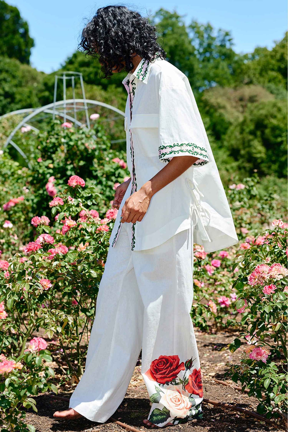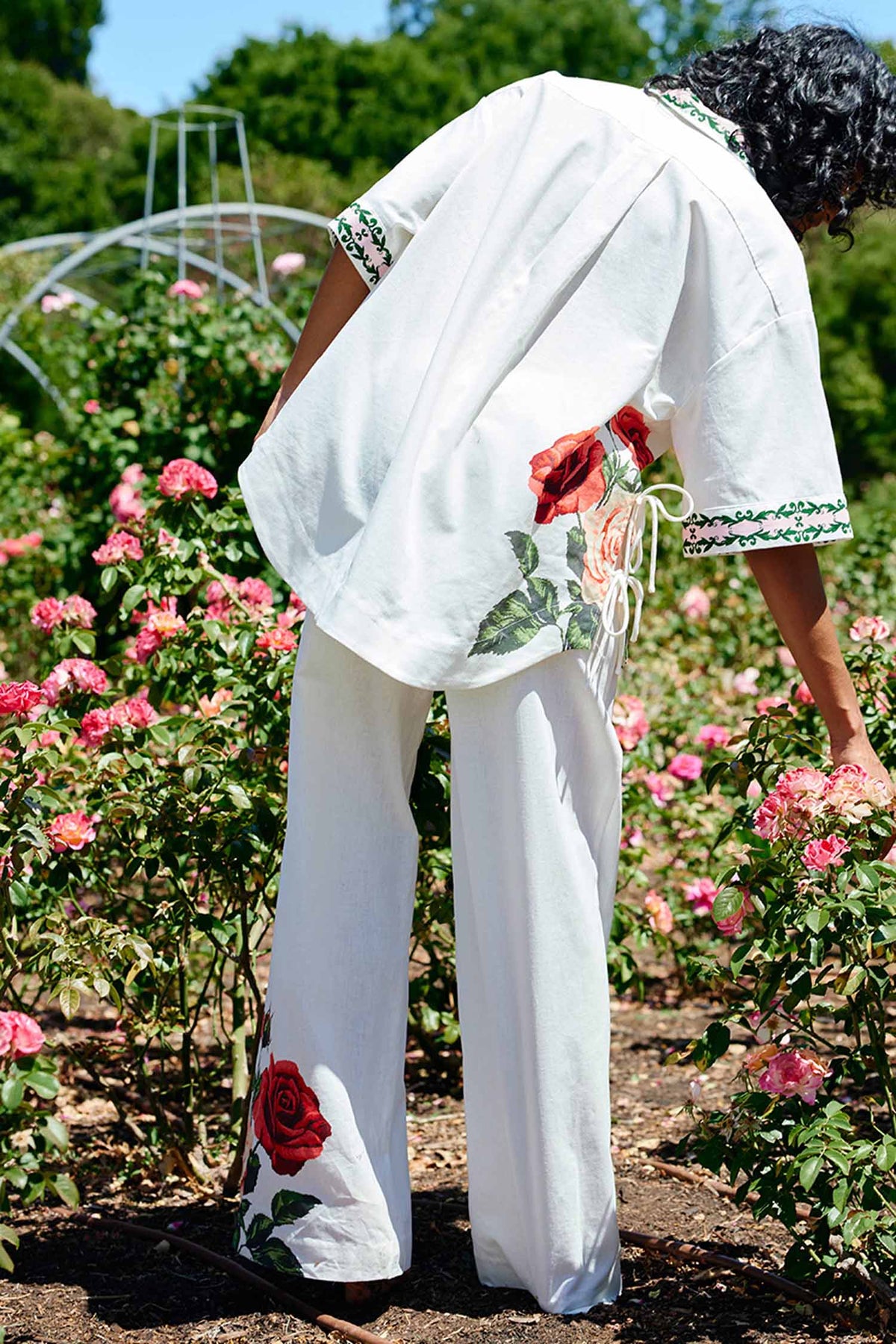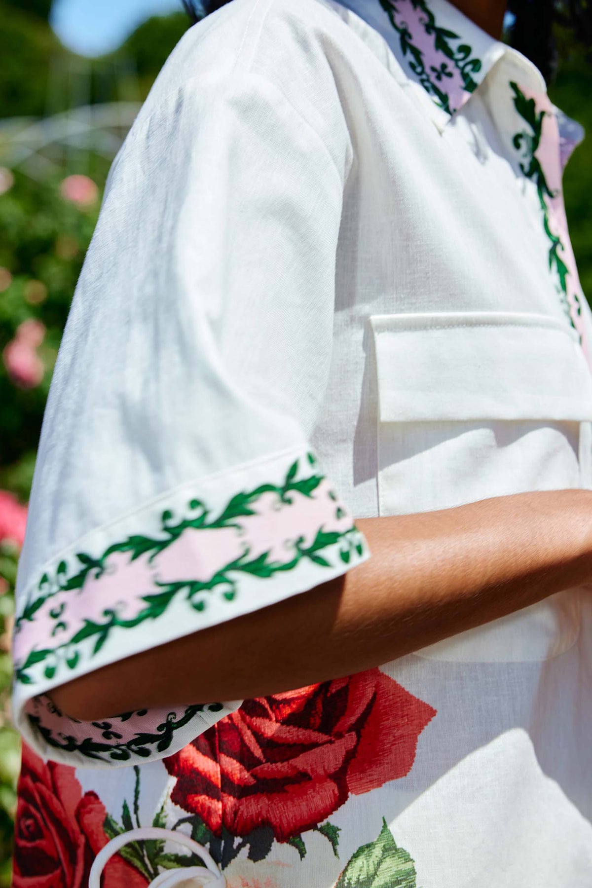 The Remy Shirt in Antique Rose from Aston Studio is crafted from a luxurious linen blend, offering a soft, lightweight feel and a draped silhouette. Featuring our delicate antique rose print and romantic tie details on the sides, this piece brings effortless femininity to your wardrobe. Pair with linen pants or denim.