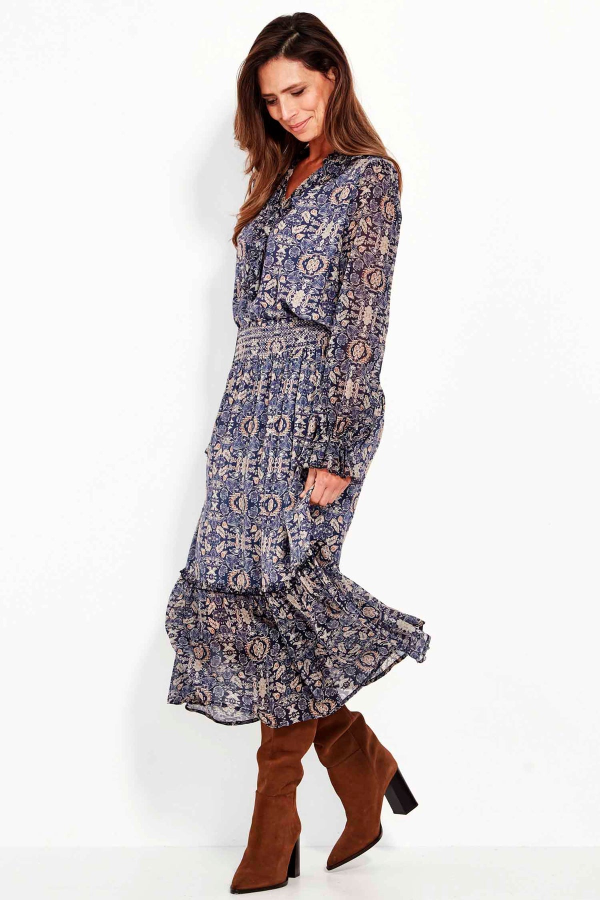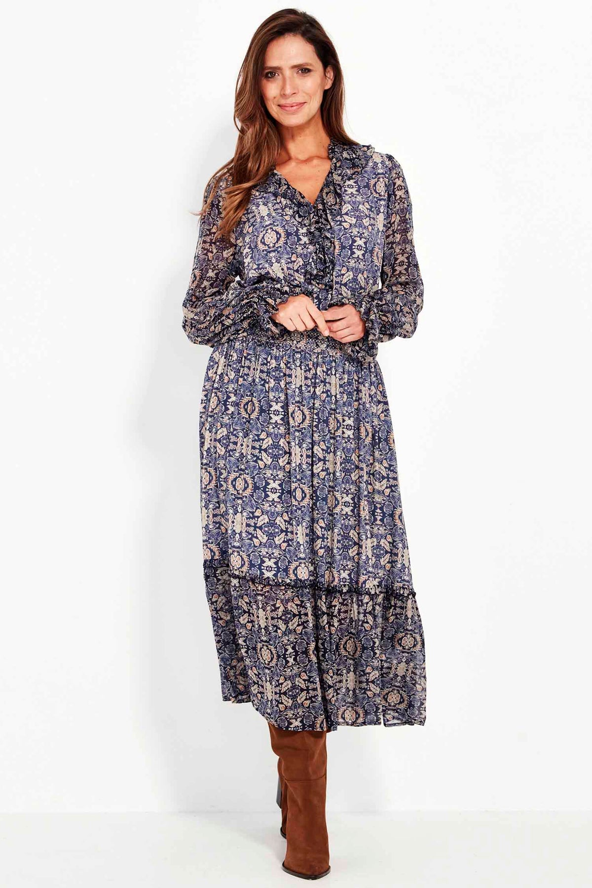 The elasticated cuffs, finished with a soft ruffle, create a beautifully detailed sleeve that balances ease with refinement. Lightweight and versatile, the Mercy Blouse pairs perfectly with soft pants, flowing skirts, or denim - a graceful piece for both everyday and elevated dressing.